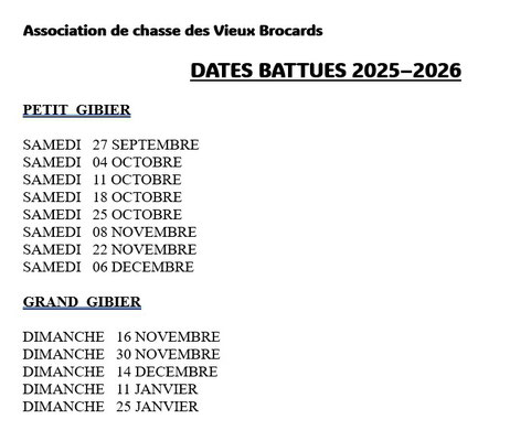 Dates de battues grands et petits gibiers LOT 3