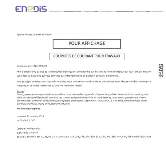 COUPURE DE COURANT LE 22 OCTOBRE 2025 DE 8H A 11H